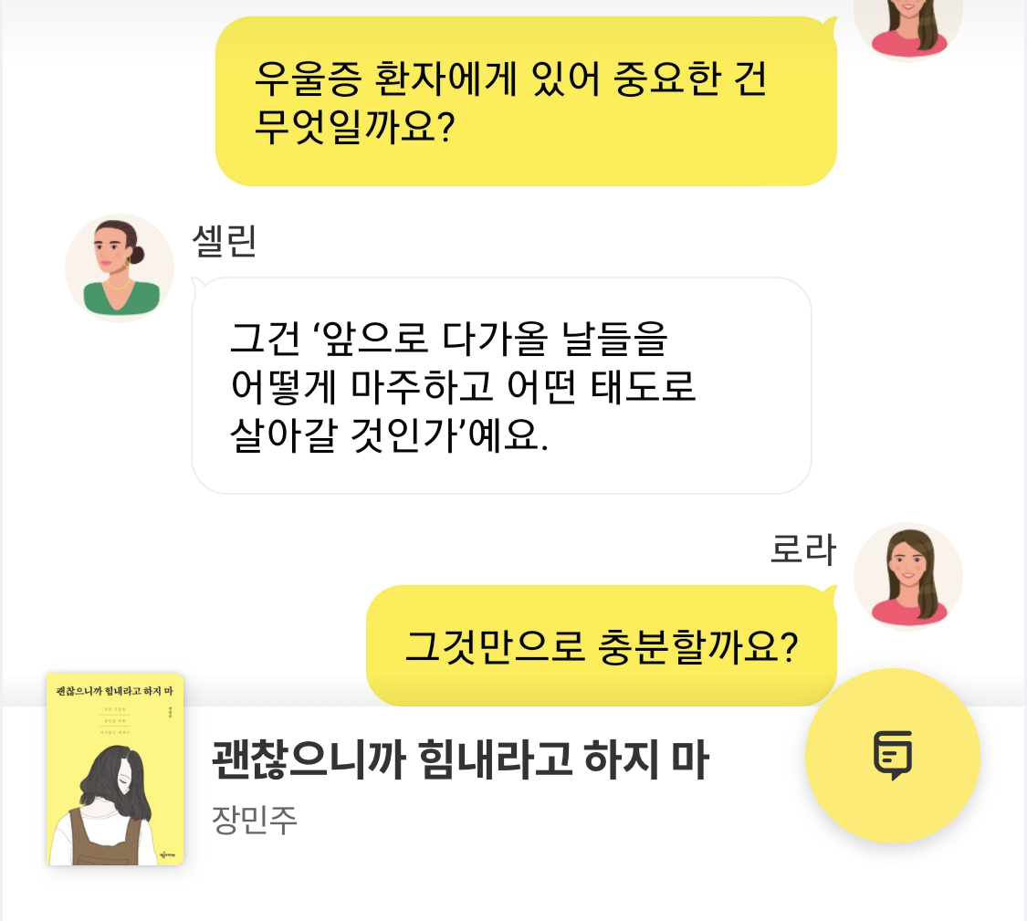 평소 카톡에서 활발한 대화를 하지 않는 저에겐 챗북은 아직 익숙하지 않습니다. 아주 가끔 들여다보는 정도입니다. 그래도 챗북에서는 현대인과 책의 자연스러운 만남을 꾀하려고 하는 게 느껴집니다. 유튜브에서 볼 수 있는 카카오톡 이야기처럼 채팅에 책이란 콘텐츠를 입히면서 일방적이기만 한 책이라는 미디어를 뒤집습니다. 이를 통해 책에 대한 벽을 조금씩 부술 수 있지 않나 싶네요.