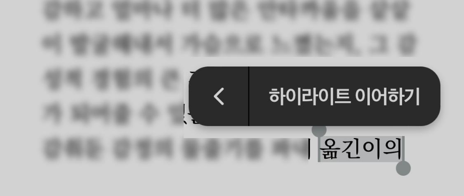 밀리의 서재의 독서환경은 직관적으로 되어 있습니다. 다른 어플과 다르게 글자나 문단 관련 기능, 리뷰 기능 등을 다 하나로 숨겨두었죠.