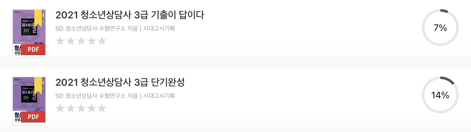 모든 문제를 풀고 정답을 맞췄다. 하지만 사이트에서 제공되는 답안에는 정말로 객관식 숫자만 담겨 있다. 그렇기에 필요한 해설은 기출문제를 정리한 책을 참고하는 게 좋다. 나는 지방을 오가는 일이 많고, 이제는 무거운 책을 들기가 싫어져서 전자책으로 구매했다. 중고로 팔 수 없다는 단점이 있어도 종이책이라면 그동안 겪을 고생을 하지 않아서 좋다. 기출문제 책은 청소년상담사 수험연구소의 것을 골랐다. 이유는 없다.
