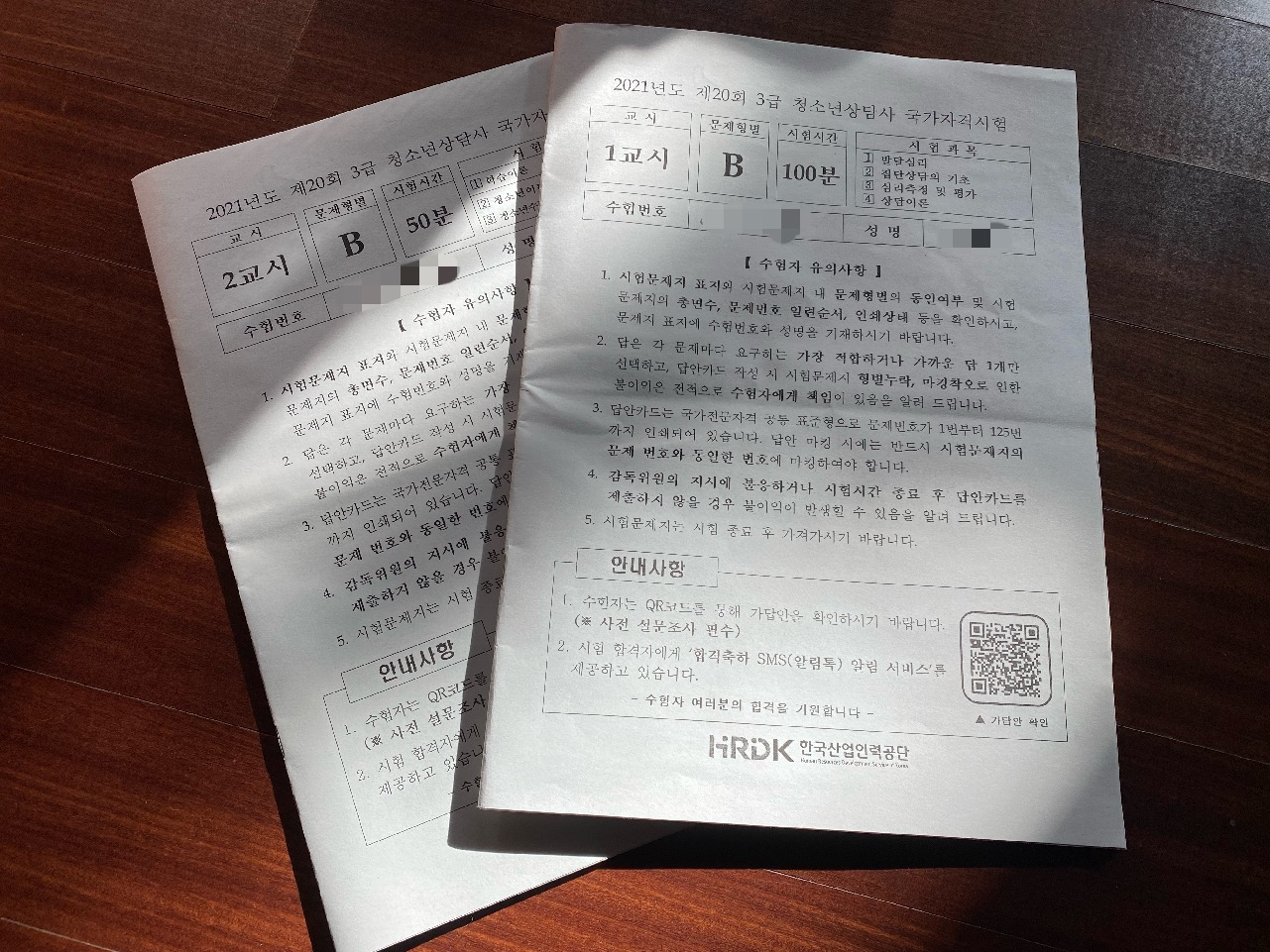 청소년상담사 시험 접수를 하는 큐넷 내 청소년상담사 사이트에 들어가보자. 2014년부터 현재까지 있었던 1-3급 시험문제지와 정답이 담긴 파일들이 있다. 3급 관련 파일들(최대한 A형으로!)을 받은 뒤 모두 프린트했다. 프린트 할 때는 1장에 2페이지가 나오도록 해야 좋다. 그렇지 않으면 무게와 부피를 감당하기 어려울 테다.