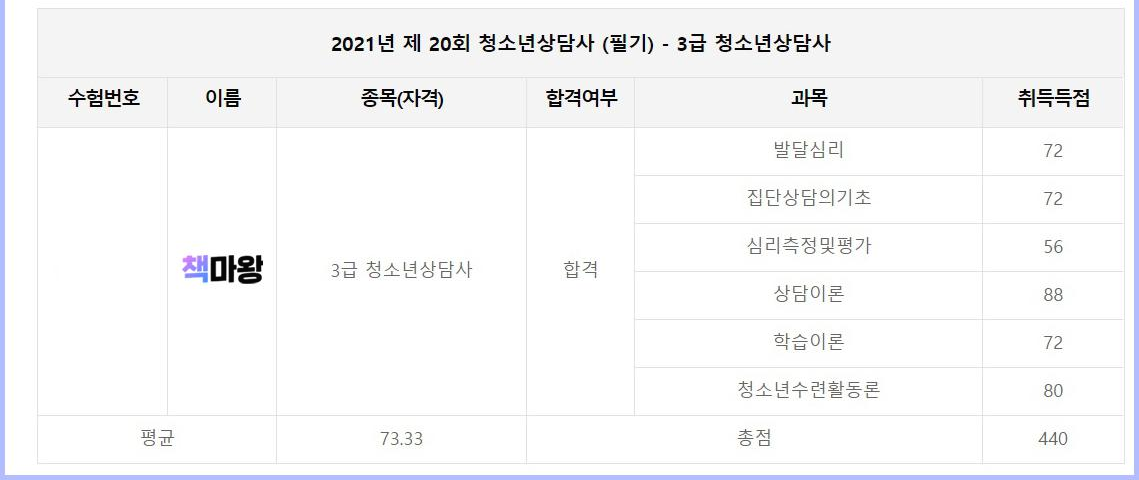 결과는 합격이었습니다. 평균 73.33으로 합격이었죠.