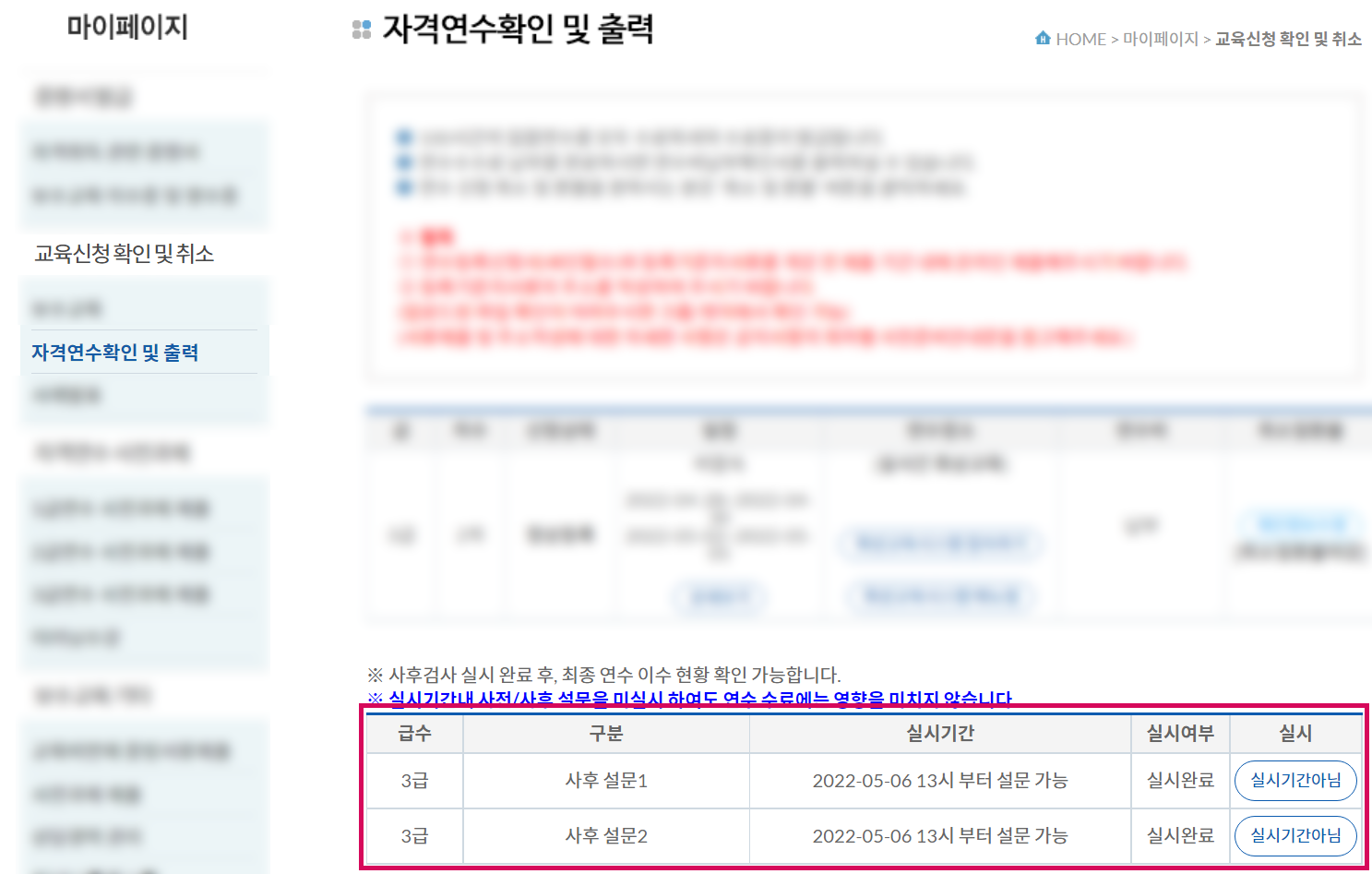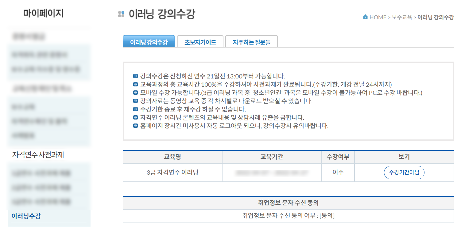 제가 5월에 수료를 했으니 자격증이 나오기까지 2~3달이 남은 상황이네요. 만약 저처럼 이 기간에 청소년자격증 3급의 자격연수까지 마쳤다는 내용을 증명하고 싶다면 이걸 출력해도 되실 거라고 봐요.