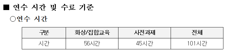 자격 연수에는 사전과제가 있습니다. 정확히는 사전과제를 시간으로 환산해서 자격 연수에 포함이 되는 구조입니다. 수료를 하려면 100시간이 필요한데요. 화상/집합교육+사전과제=101시간이니 그냥 안 빠지고 다 하시면 됩니다.