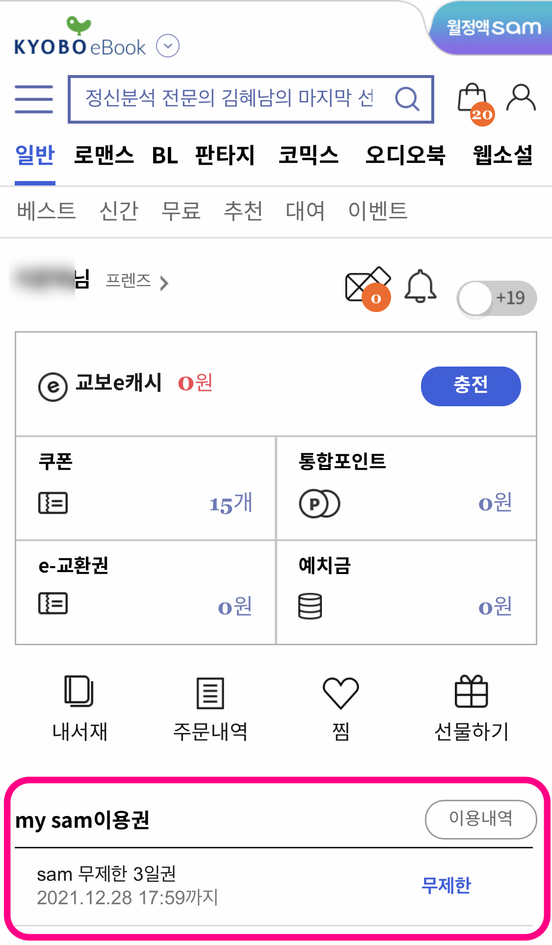 | 교보문고 eBook 구독 서비스 sam 14일 무료 체험 신청하기(교보문고 어플 UI 리뉴얼!) (0) | 2022.10.12 |