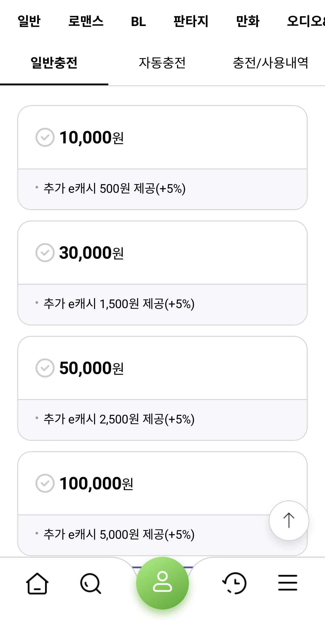 참고로 최고 충전 금액은 월 100만원까지입니다. 1회당 30만원을 초과할 수 없고요. 자동충전 시 지정일이 없으면 그 달 말일에 충전이 됩니다. 그리고 충전한 e캐시로 도서 구입 시 현금영수증이 발급가능하단 점 참고하시고요.