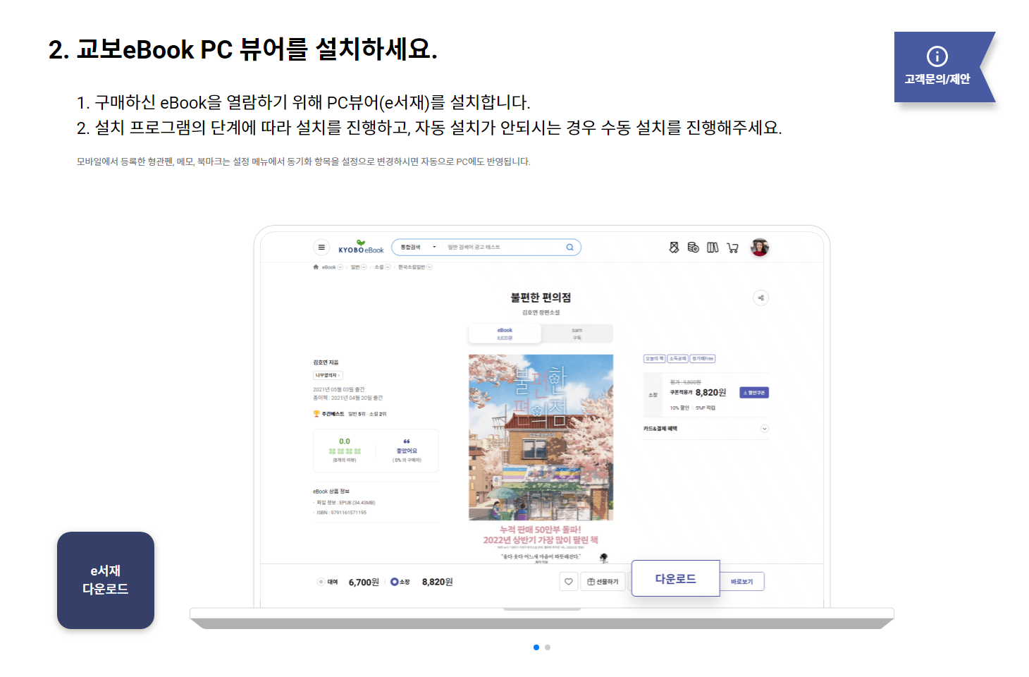 먼저 교보eBook PC뷰어는 아래의 링크에서 e서재 다운로드를 눌러서 받으시면 됩니다.