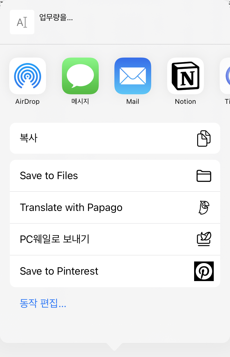 공유 기능에서도 비슷한 결과를 얻을 수 있습니다. 이건 조금 공식적으로 인용할 수 있는 방법인데요. 공유 버튼을 누르면 중간에 "텍스트 공유"를 누릅니다. 그러면 복사를 할 수 있고요. 복사한 내용을 붙여 넣으면 드래그한 부분, 책 제목, 교보eBook으로의 링크가 나옵니다. 다양하게 쓰일 수 있는 아주 좋은 정보를 획득하는 거죠.