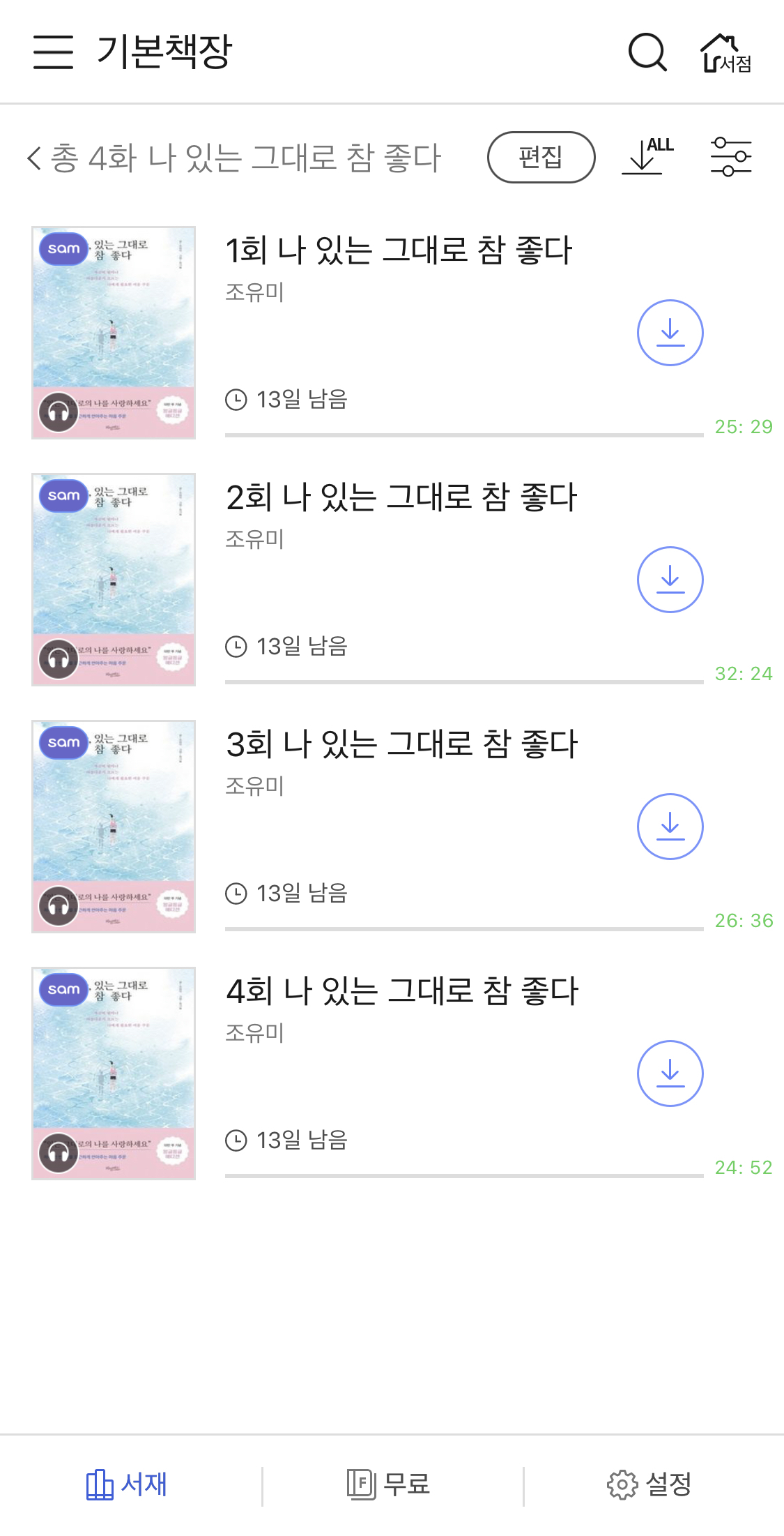 위에서 어플로 보았던 오디오북은 pc뷰어에서 이용할 수 없습니다. 오직 어플을 통해서 들을 수 있죠. 아쉽지만 지나갑니다.