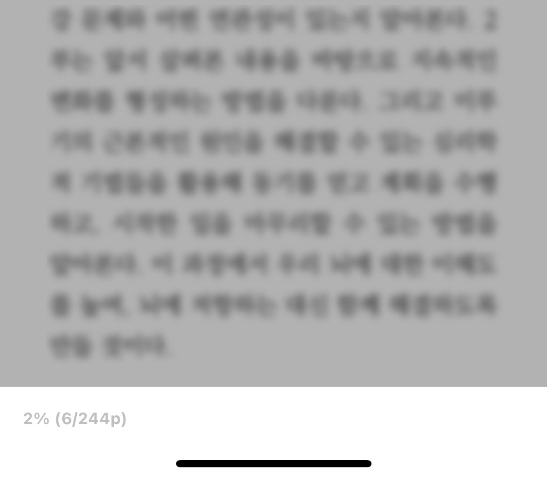 독서 시 메인화면입니다. 구성은 많은 전자책 뷰어와 비슷합니다. 그래도 개인적으로 밀리의 서재 다음으로 좋아하는 게 교보문고 eBook어플입니다. 다른 뷰어들은 대규모 업데이트를 거쳤거나 별로인 상태를 유지하기도 하지만, 교보문고 뷰어는 원래 이랬거든요. 오랫동안 사용하면서 가장 깔끔하다고 느꼈습니다. 나중에 밀리의 서재와 예스24의 인터페이스가 리뉴얼 되어서 그쪽이 좀 더 세련되어지긴 했지만요.