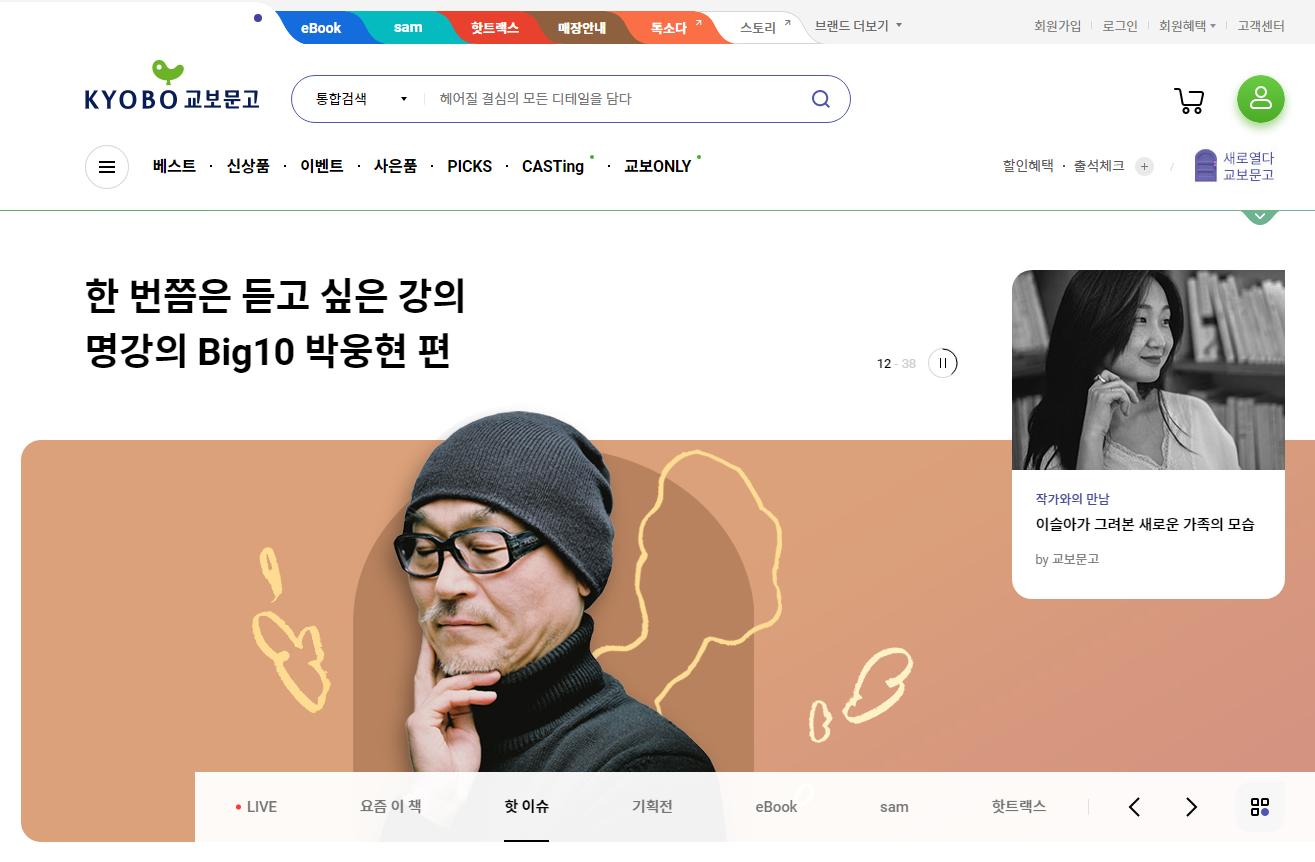 교보문고 어플이 대대적으로 바뀌었습니다. 정확히는 pc판 홈페이지와 어플에 모두 변화가 있었죠. 아, 교보문고 pc뷰어만 거의 그대로네요.