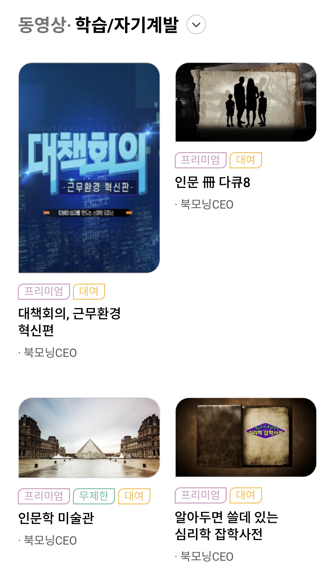 현재 올라와 있는 동영상은 학습/자기계발 내 어학과 직무교육 관련 영상뿐입니다. 영상은 사파리 자체에서 재생이 되는데요. 솔직히 영상이 적은 점을 떠나서 교보문고가 무엇을 위해 이것을 하는지 의문이 들었습니다. 그걸 설득하려면 무언가 차별화되고 매력적인 콘텐츠가 계속 제공되어야겠죠.