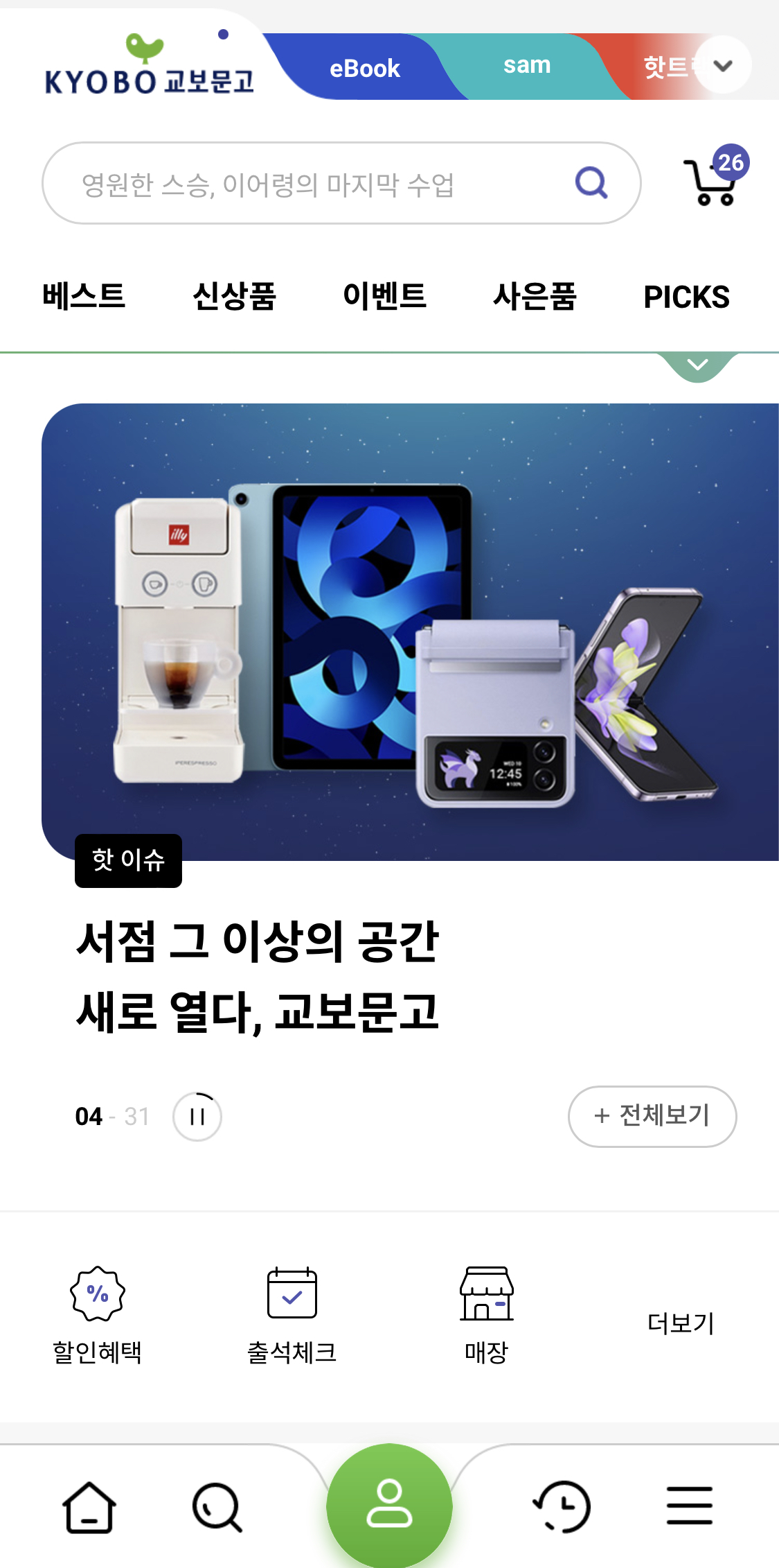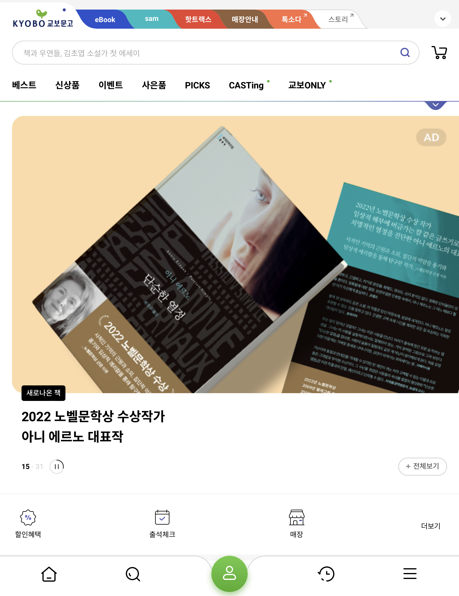 정리를 하겠습니다. 22년 10월에 이루어진 교보문고 리뉴얼은 전자책 정기구독 서비스인 sam에서 일부 정책의 변화와 교보문고 어플의 인터페이스 변화가 메인이었습니다. 아직 저로써는 리뉴얼 이전이 익숙한 시기인데요. 언제나 그랬듯이 금방 적응할 것으로 보입니다.