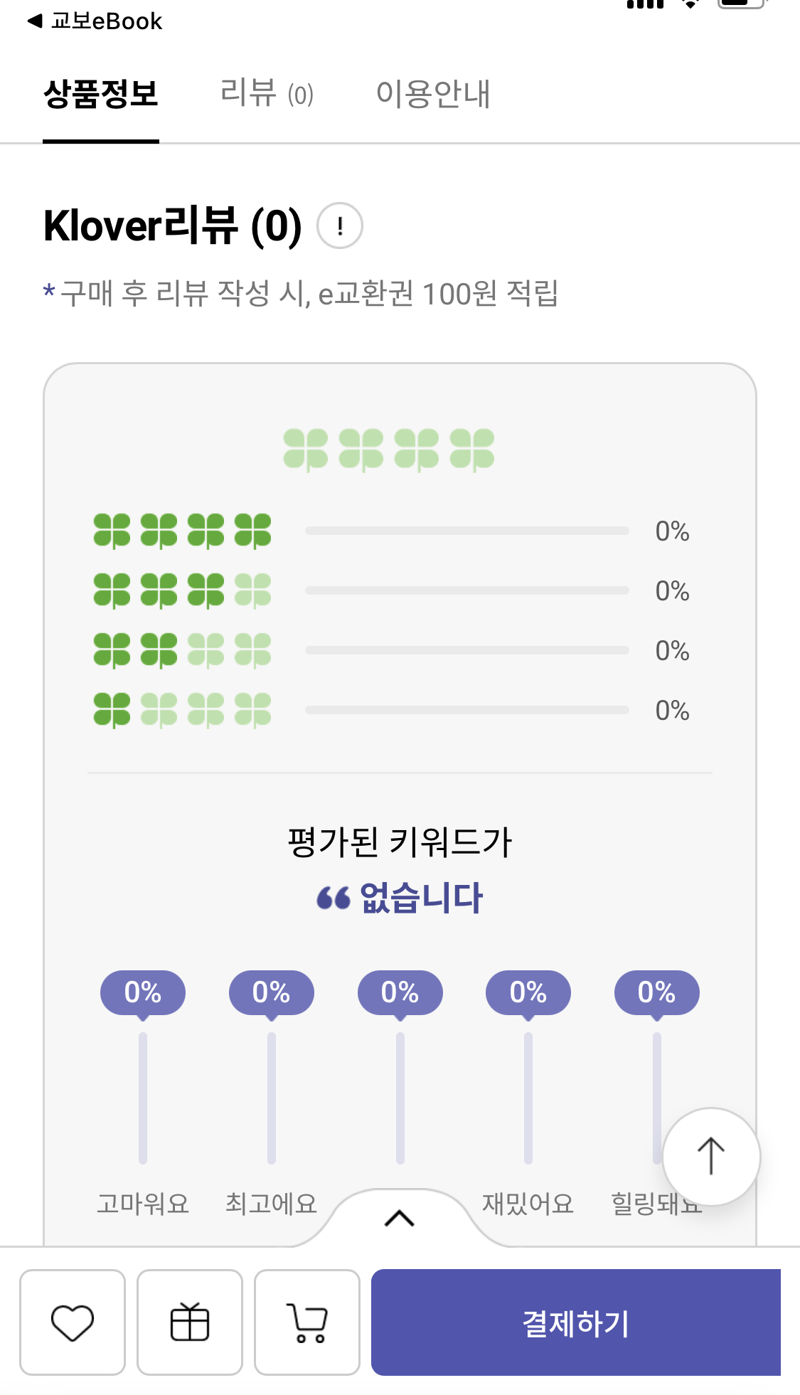 화면의 우측 하단 버튼은 이 책의 오디오북 목록을 보여주고요. 우측 상단 버튼은 교보문고 리뷰인 클로버 리뷰를 보여줍니다.