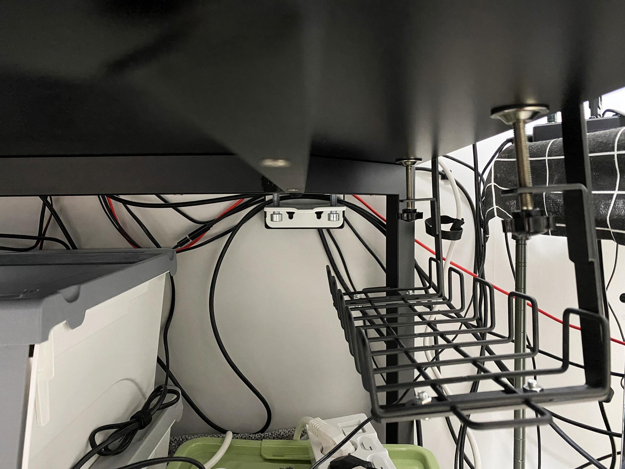 데스크셋업을 새로한 뒤에 멀티탭은 잠시 아래로 내려왔습니다. 하지만 멀티탭을 받치고 있는 저 수납함을 자주 쓰기 때문에 멀티탭이 거슬립니다. 빨리 멀티탭 트레이를 책상에 장착해야겠죠.