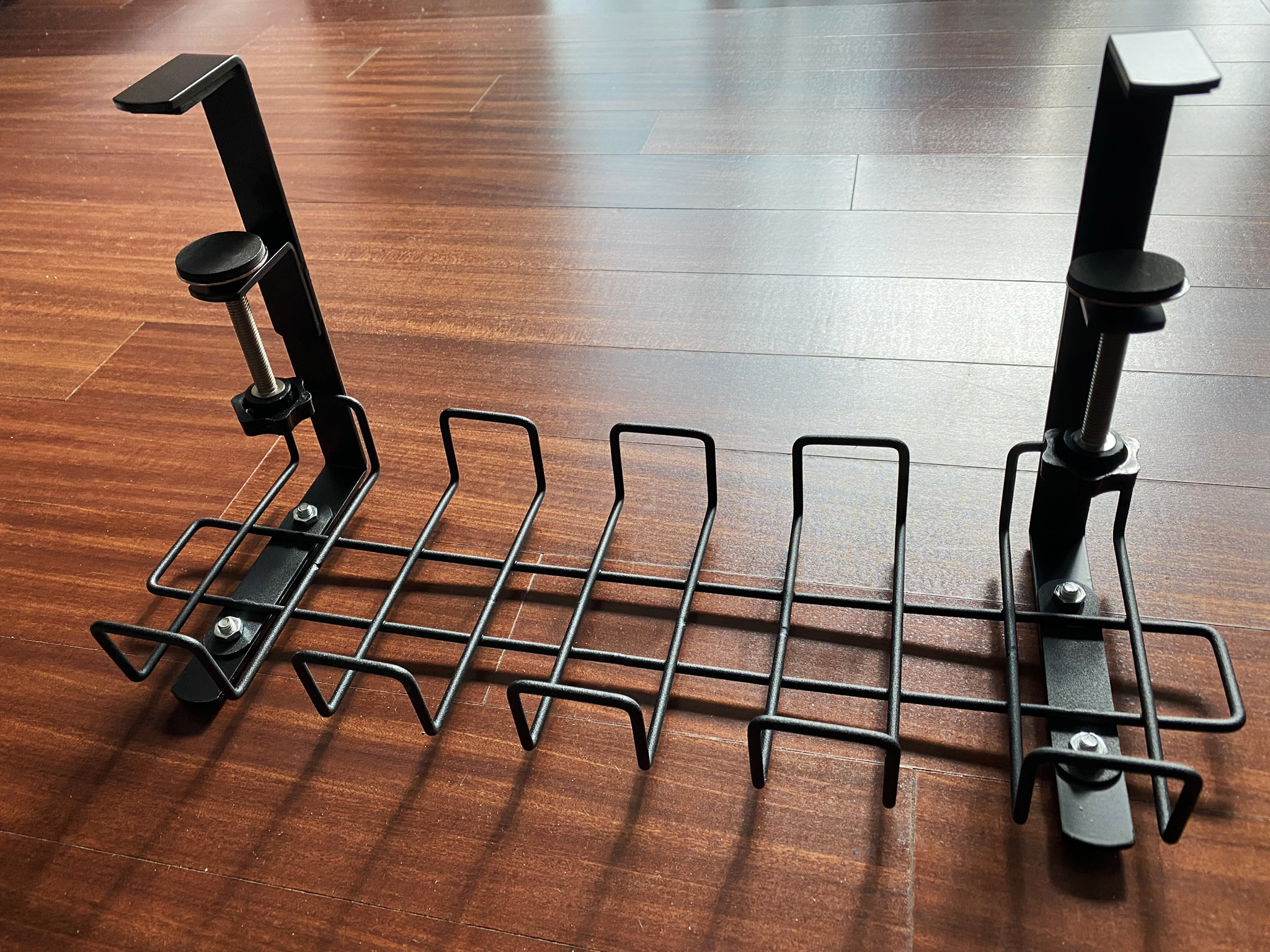 트레이에 멀티탭을 놓았습니다. 개인적으로는 책상 뒤쪽에 달면 좋을 것 같았는데요. 거기는 다른 물건들이 치워져야 트레이를 방해하지 않을 듯 합니다. 그리고 동봉된 스트랩을 사용해서 멀티탭과 트레이를 고정시킬 수 있습니다. 저는 이 받침대를 임시로 설치했기 때문에 지금 하지 않고 추후 하려고 합니다.