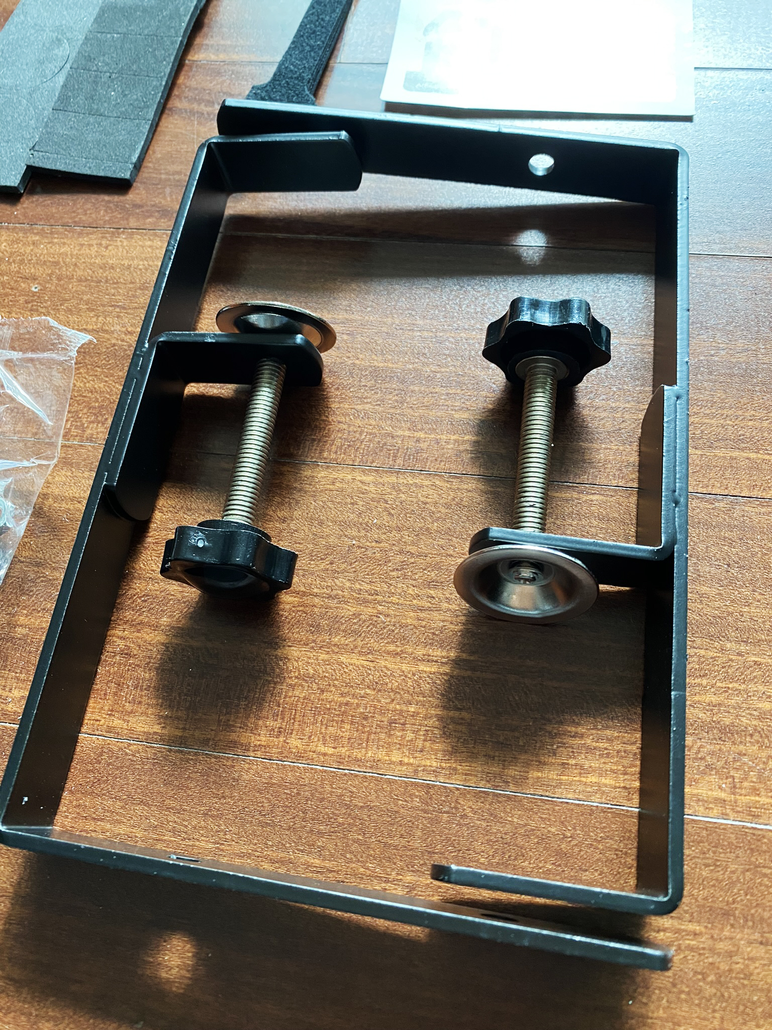 클램프 형식이기 때문에 이후에는 클램프의 나사만 잘 돌려주면 됩니다. 대신 받침대 주변에 다른 가구나 물건이 없도록 하는 게 좋습니다. 그리고 책상 다리와도 최대한 부딪히지 않도록 해야하죠.