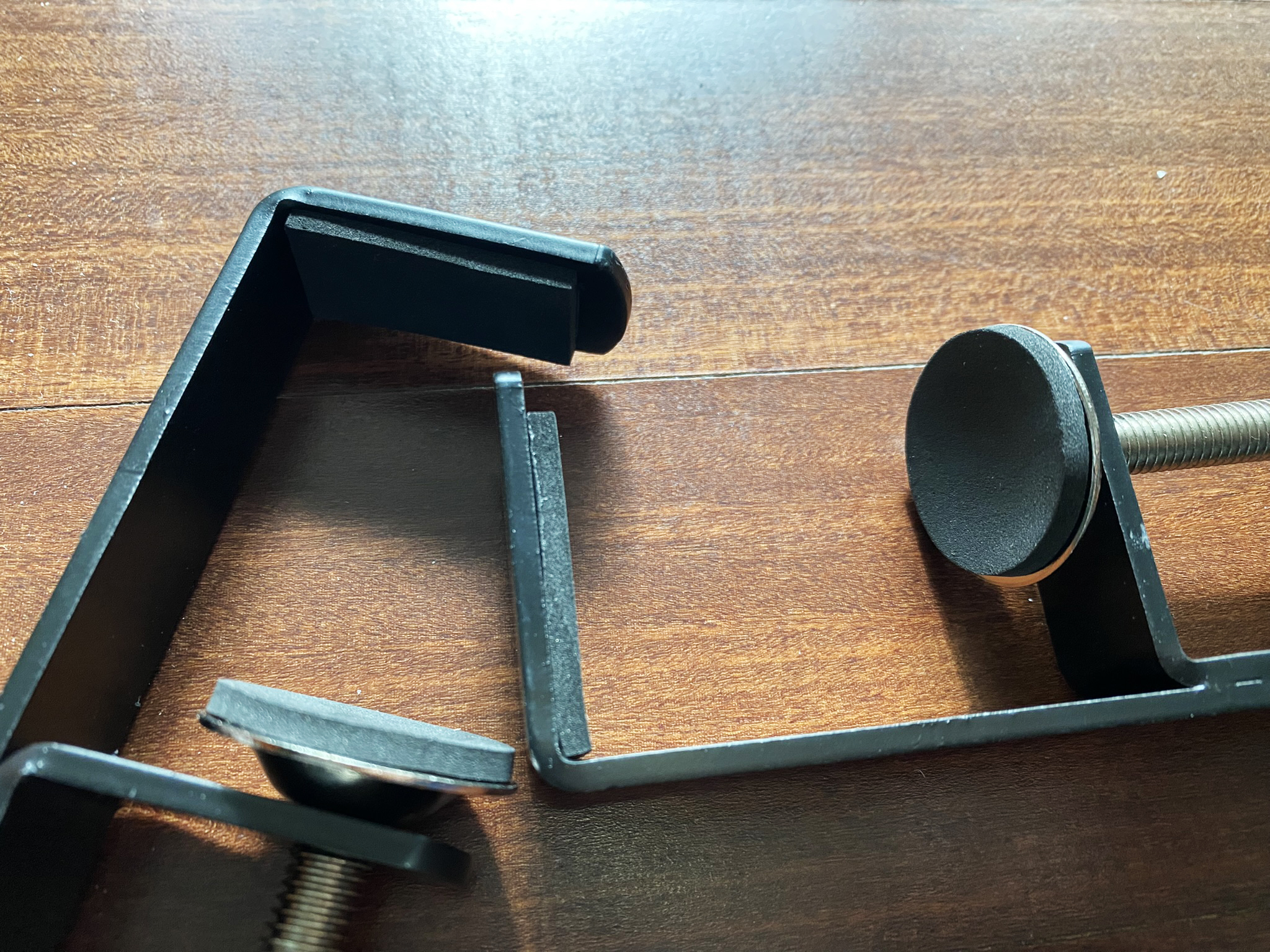 받침대가 휘어진 게 보이실까요? 원래 저렇게 왔습니다. 말씀드렸다시피 클램프만 멀쩡하고, 받침대 기능만 잘 수행하면 됩니다.