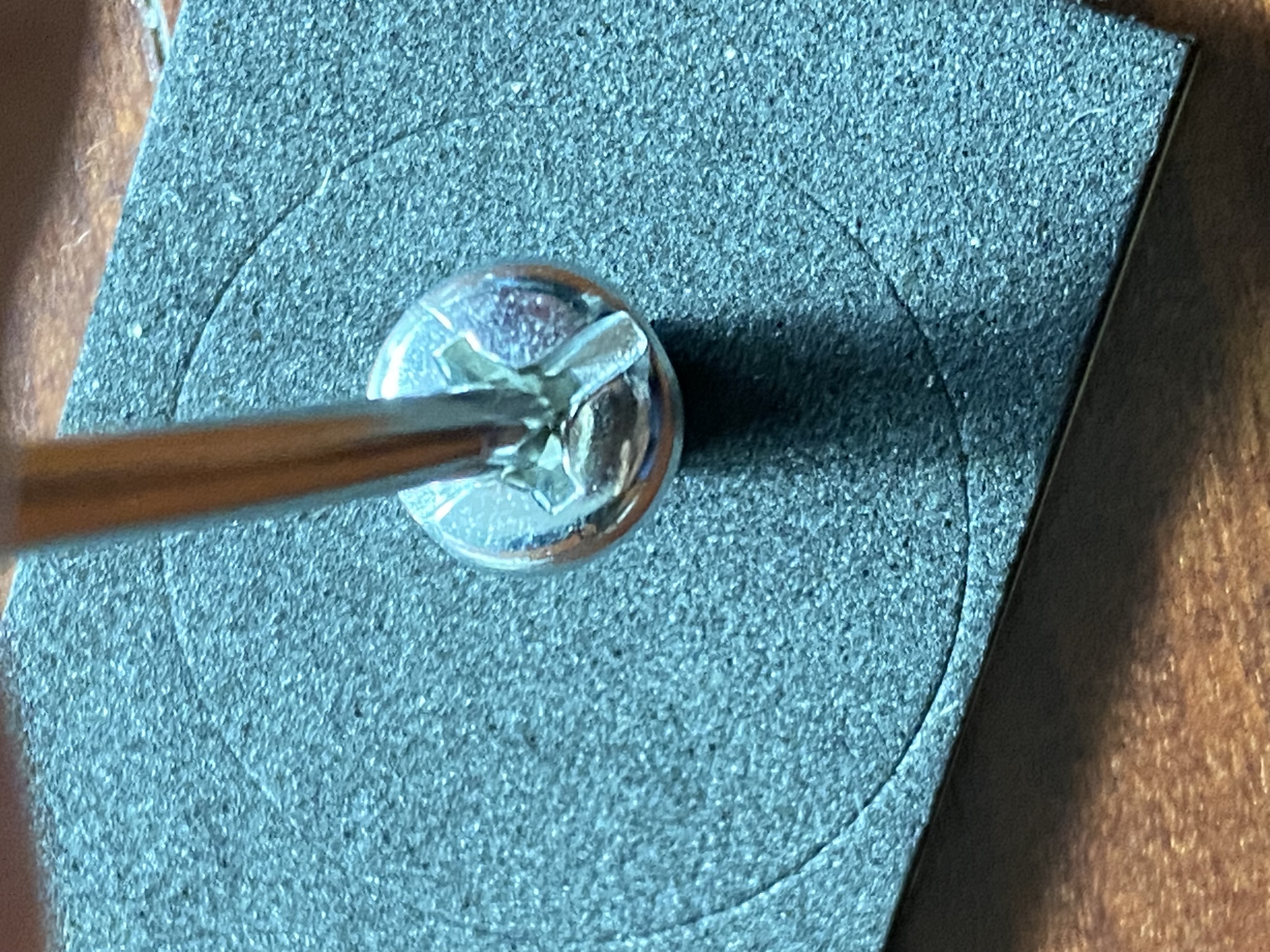 그런데 여기서 유머. 드라이버가 너무 작아서 나사와 맞지 않았습니다. 보시다시피 나사 홈의 크기보다 드라이버가 더 작습니다. 작은 드라이버를 얻었다고 여기고, 결국 집에 있는 드라이버로 조립을 했습니다.