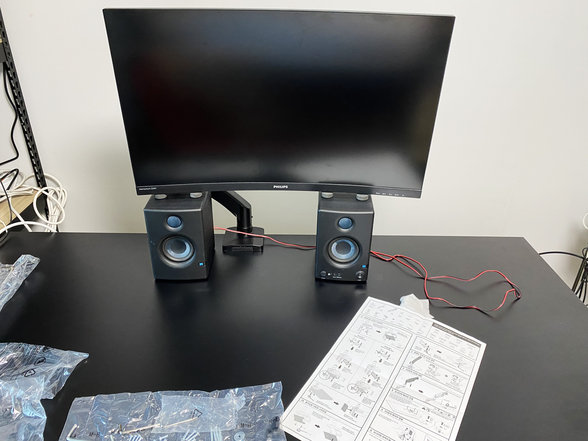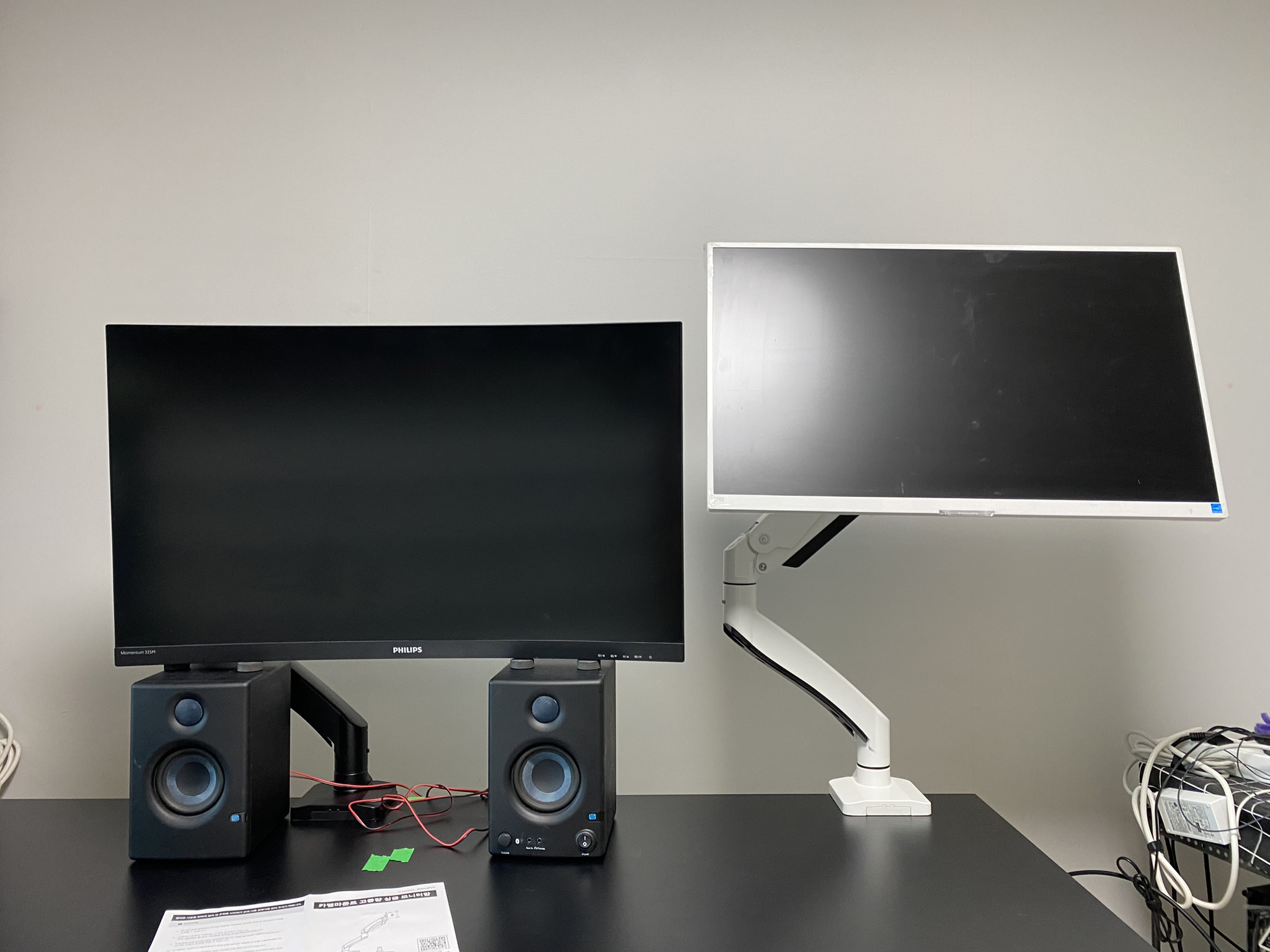대신 색상은 검정색으로 했습니다. 이번에는 검정색 버전도 풀려있었습니다. 이전에 검정 모니터를 흰색 모니터암에 맞추었었으니, 검정 모니터암을 사서 바꿔주면 될 것 같았습니다.