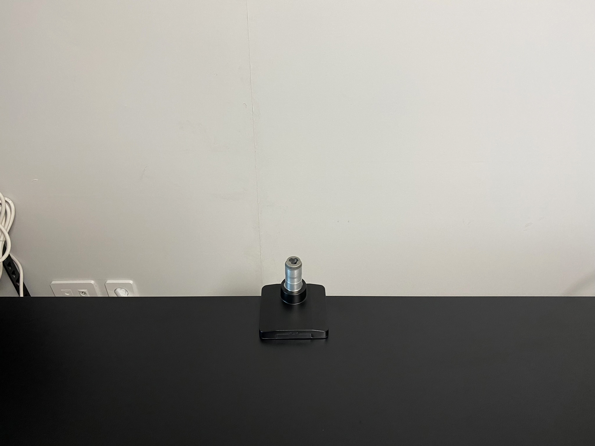 이렇게 결합한 클램프와 큰 나사 사이에 플레이트를 놓습니다. 저 스티커와 플레이트 사이에 책상이 끼워질 거예요.