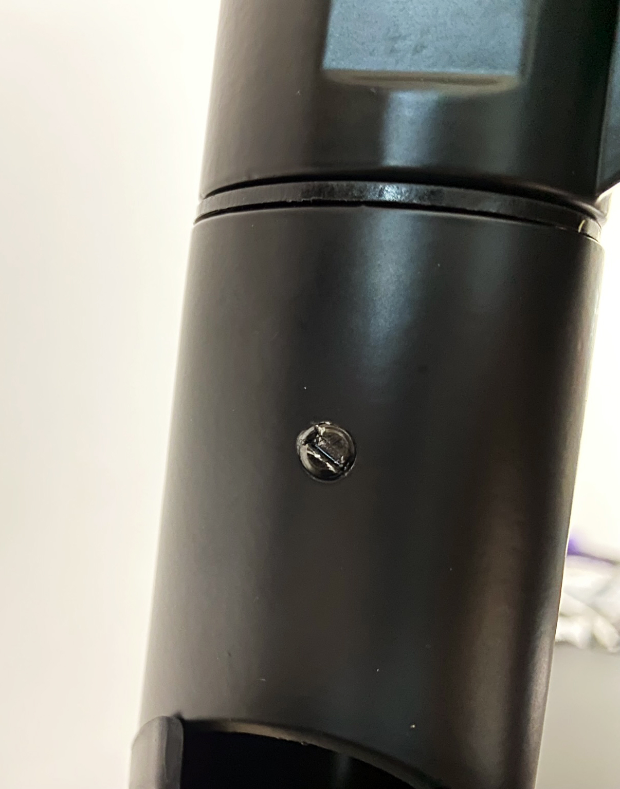 1단 모니터암을 짧게 튀어나온 봉에 넣은 뒤에는 나사를 조여줍니다. 가장 작은 십자 드라이버가 동봉되어 있을 거예요.그걸로 조여줍니다. 조일 수 있는 게 2개가 있을 텐데요. 위의 것은 1단 모니터암을 360도 돌리느냐 180도 돌리느냐에 대한 것이고요. 아래 것을 조이면 1단 모니터암과 클램프 부분이 고정될 겁니다.