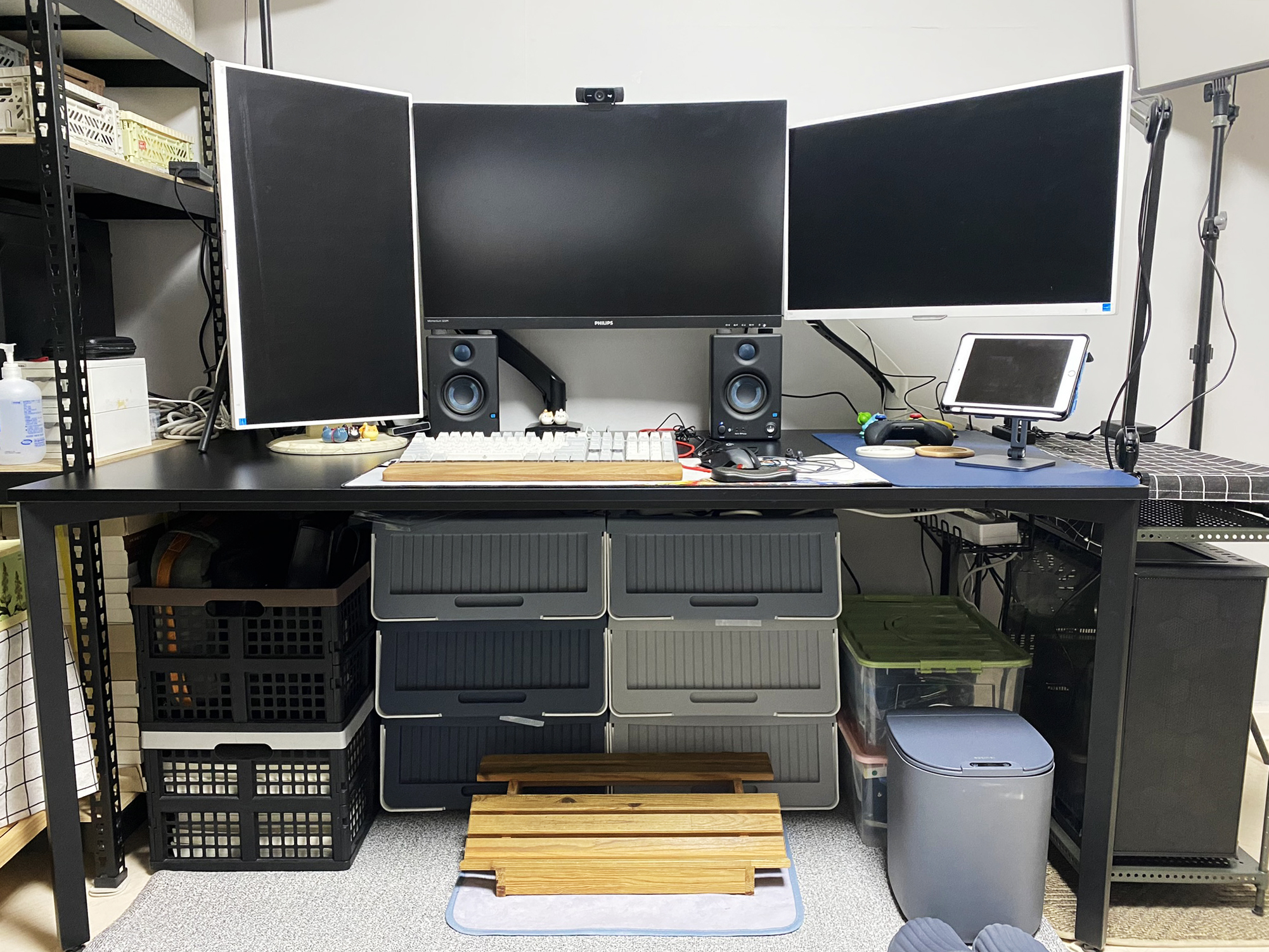 이번에 모니터와 모니터암의 색상을 맞춘 세팅이 마음에 들었습니다. 데스크 셋업 관련된 이야기는 다른 포스팅에서 확인하실 수 있고요. 불가피하게 함께 해야하는 물품들이 제 방에 있지만, 그런 현실적 조건 아래에서 하나씩 맞춰가는 게 답이 되지 않을까 싶습니다.