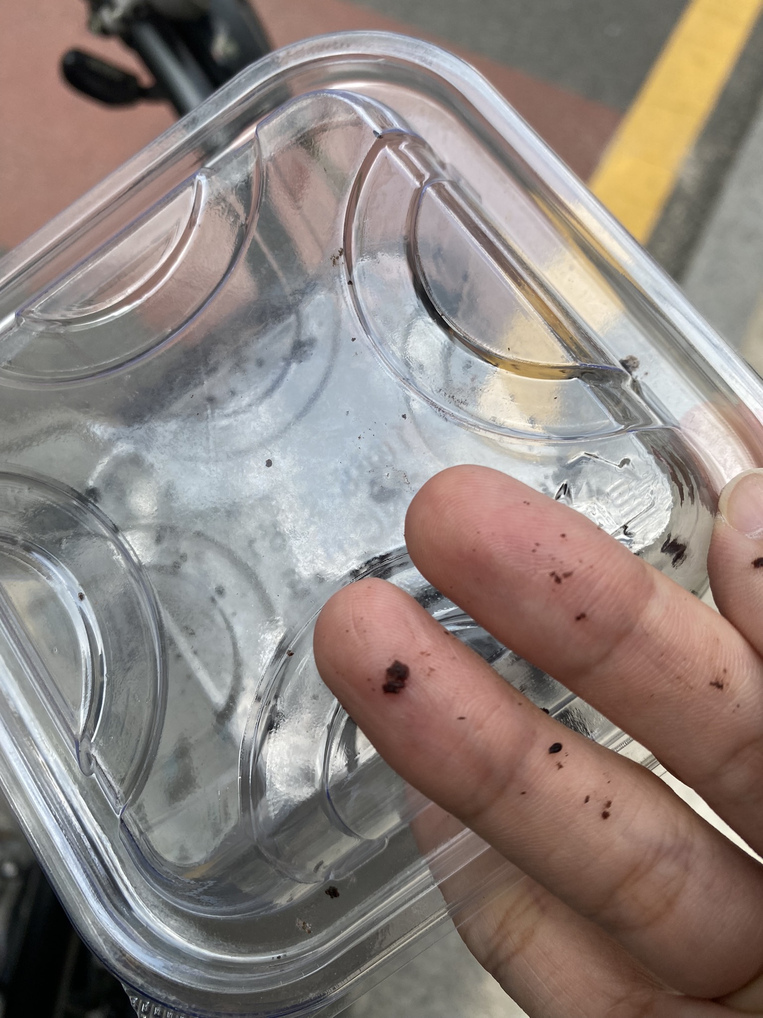아직 센터에 가는 길이었고 무더운 날이었기에 편의점을 나와서 자전거 옆에서 먹었습니다. 마카롱처럼 위아래로 빵이 있고요. 가운데 크림이 있습니다. 빵은 솔직히 제가 어릴 때 먹던 포켓몬스터 고오스빵에서 초코를 많이 뺀 맛이었습니다. 더 정확히 하자면 일반 값싼 빵에 초코향을 넣은 느낌이었습니다. 그래도 부드러웠기에 그러려니 했습니다.