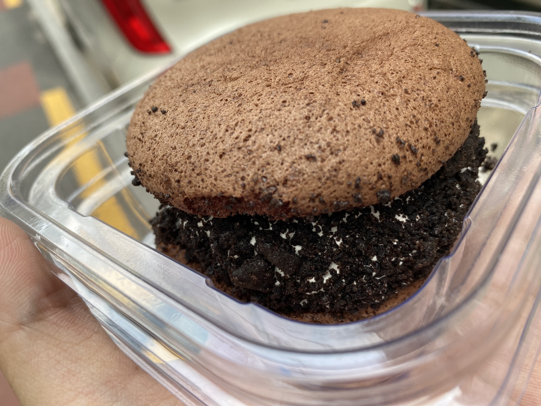 크림은 일반 생크림 같았습니다. 플레인이라면 조금 허무했을 것 같습니다. 다른 사진에서는 뚱카롱처럼 크림이 두꺼웠던데 제껀 딱 와퍼 패티 3장 겹쳐놓은 높이 정도로 보였습니다. 다행히도 쿠키앤크림이 붙어 있어서 심심한 맛을 잡을 수 있었습니다. 물론 요 쿠키앤크림이 눅눅하지 않고 조금 바삭했으면 좋았을 것 같습니다. 가뜩이나 씹는 맛이 없는 제품인데, 곁다리도 덜 씹히는 것이라면 좀 그렇잖아요.