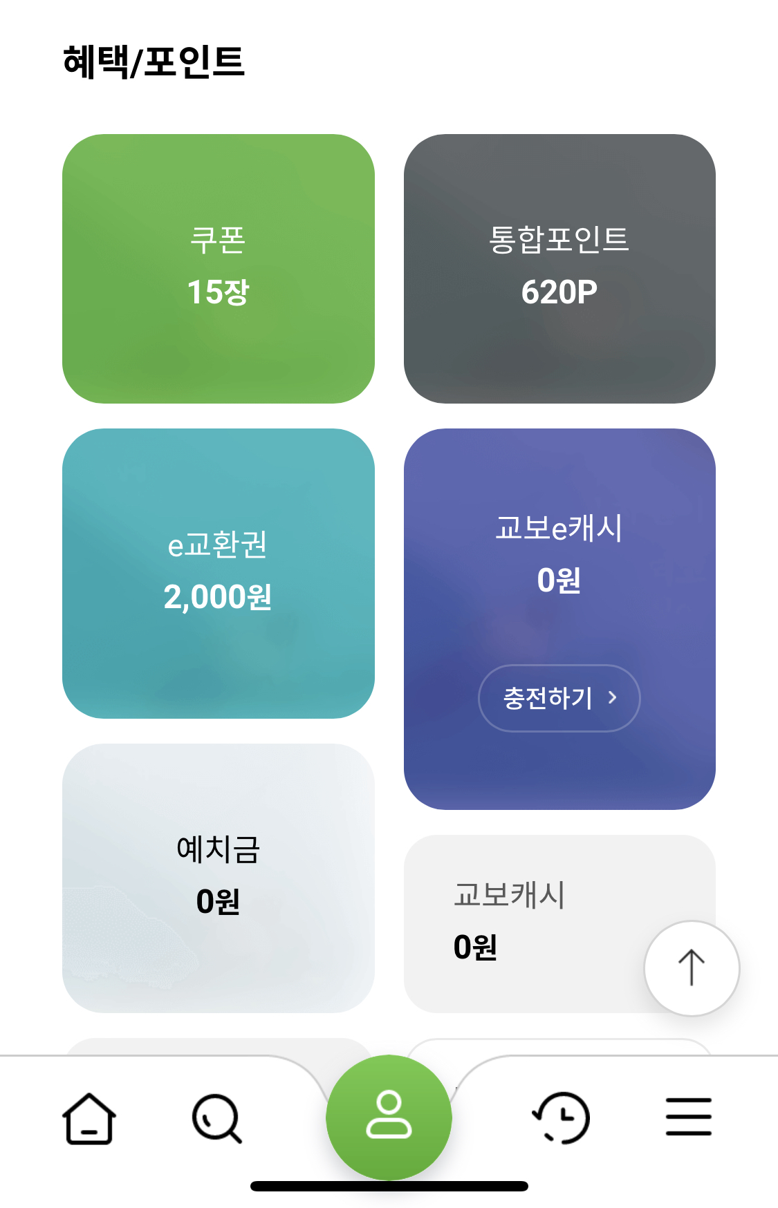 교환권은 초록색 원에 사람 픽토그램이 있는 버튼을 누르시면 "혜택/포인트"에서 보실 수 있고요. 사용은 당일에 가능합니다. 교보문고 e교환권의 대부분은 발급 당일에 사용할 수 있기 때문에 자주 구매하지 않으신다면, 구매하실 때 받으시는 게 좋습니다.