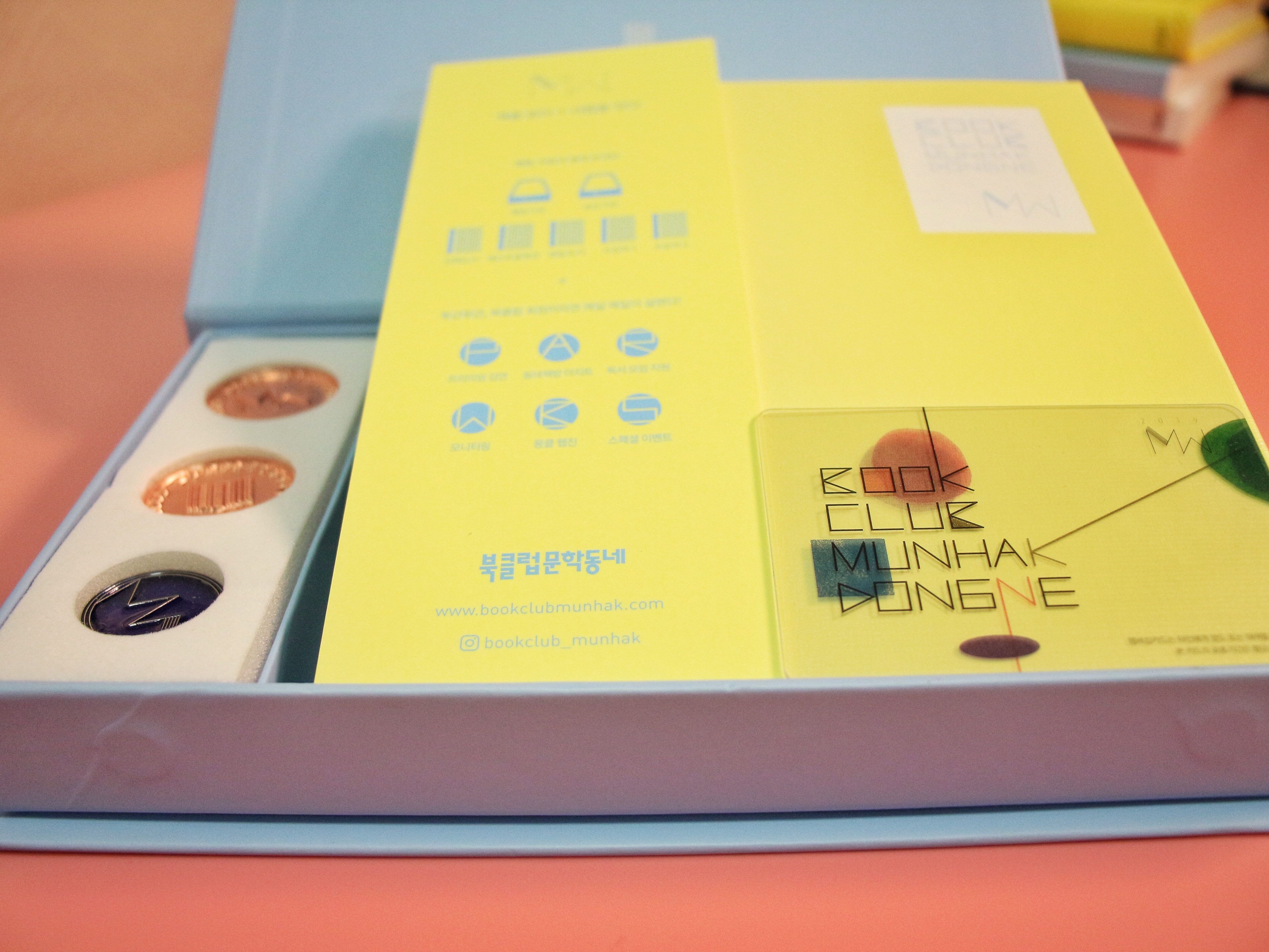 웰컴 키트 내부에는 코인 2개와 뱃지, 리딩리더노트, 책갈피, 멤버십 카드가 담겨 있다.