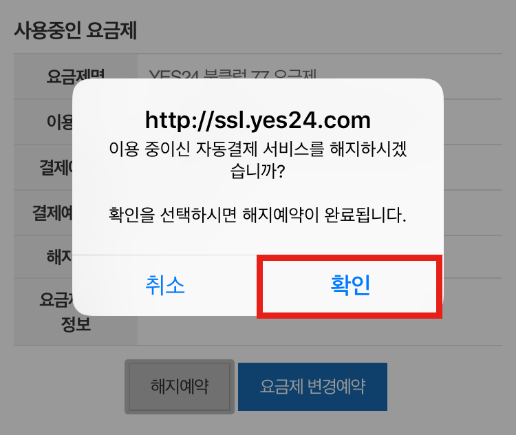 7. 확인 버튼을 누르면 해지예약이 됩니다.
