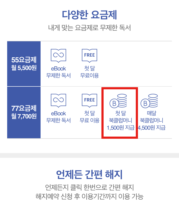 현재 왠만한 전자책 분야에서는 1달 무료 서비스를 제공하고 있죠.