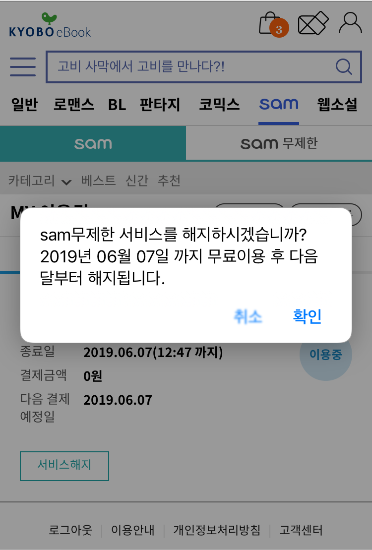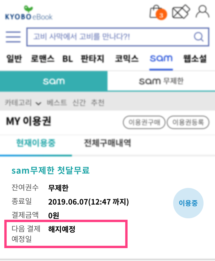 | 교보문고 전자책 월정액 서비스 SAM 1개월 무료 이용하는 방법!!(ios, 모바일) (0) | 2019.05.08 |
